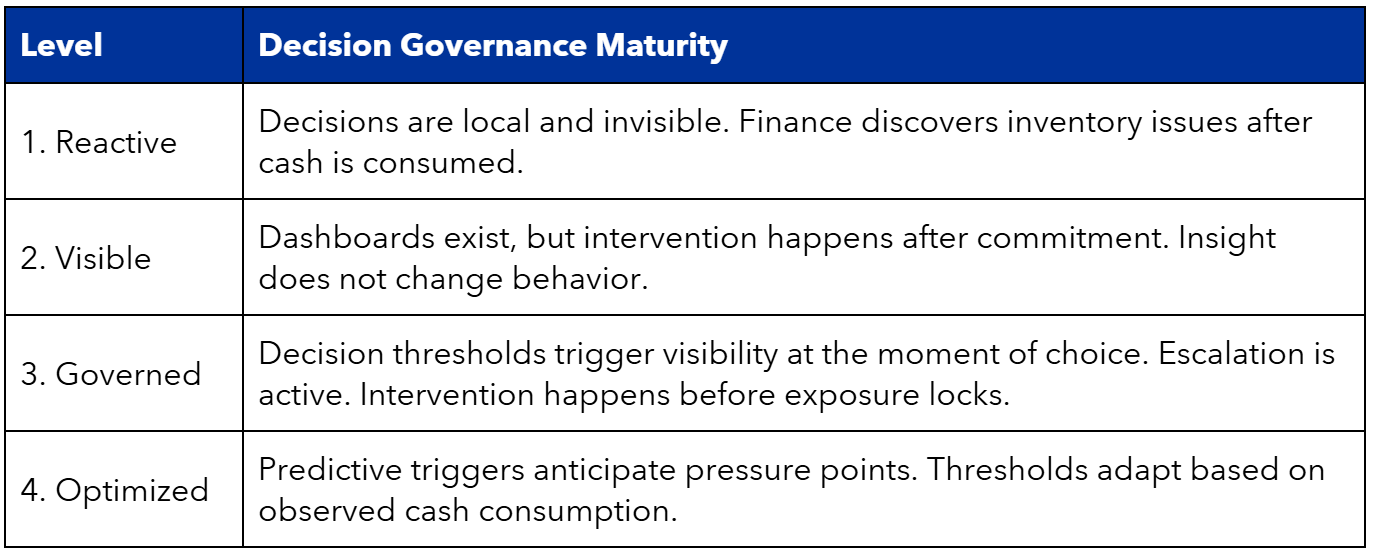 High-performing organizations move upstream. They manage the decisions that create exposure rather than managing inventory outcomes after the cash is already committed.